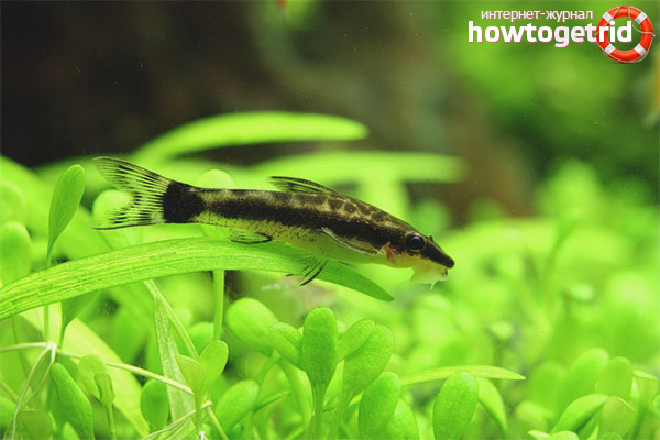 Small schools of fish, the average size of which reaches 5 cm, regularly comb the sandy bottom of the reservoir. Due to the presence of the suction cup’s mouth, the catfish can withstand even a fairly strong current, tightly attached to the surface. Also, the structural features of the mouth allow this river inhabitant to clean plants, while not violating their integrity.
