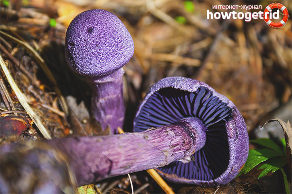 Such a conditionally edible mushroom, like the cobweb violet, is not so common in the forests of our country, which is not surprising, because it is included in regional and federal lists of endangered species, as well as in the Red Book. He got his name for a characteristic, very bright and saturated color, in which both his hat and leg are painted. Usually a flashy appearance in nature is a real synonym for danger - it’s enough to recall such a poisonous mushroom known to everyone since childhood as red fly agaric. But they have rules for them to have exceptions - in this case, this role went to the purple cobweb, more details about which you will find in this article.