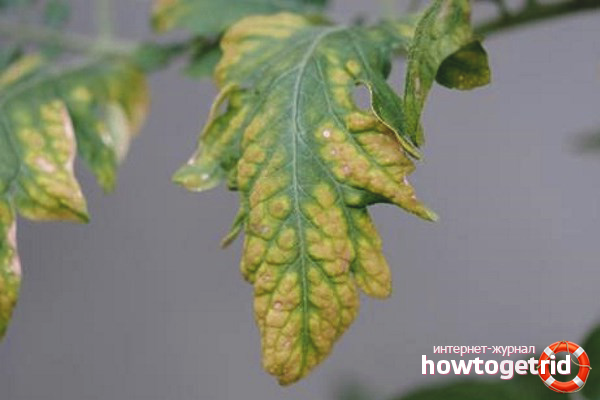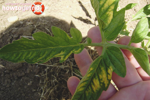 Signs Leaves brighten from the central vein. Then they turn yellow, dry and fall on their own. Ailment begins from below and gradually creeps to the top of the head. If you leave the matter to chance, then the tomato will quickly die, simultaneously infecting all nearby neighbors.
