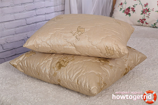 Camel wool pillows are often made from two sections, one of which is made from bird fluff or synthetic winterizer. Such a measure is necessary not to reduce the cost of the finished product, but to increase the duration of its use. Pillows made of natural materials under constant load quickly lose their quality due to the fact that the wool quickly rolls. Such cakes can last a maximum of six months. Two-section pillows can last more than 5 years.