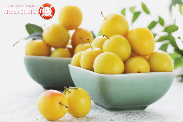 Cherry plum belongs to the genus plum. Its territory of growth is in the Caucasus, Crimea, the countries of Europe and Asia. In their shape, the fruits can be oblong, flat or round. The color distinguish yellow, purple, red and black cherry plum. The composition of the berries accumulates many valuable elements for the human body. But with inept consumption, the fruits can be harmful. It is for this reason that it is necessary to consider the negative and positive sides of cherry plum.