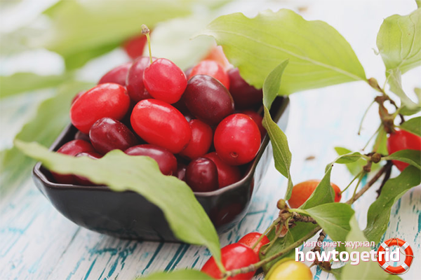 Dogwood value is determined by its rich chemical composition, therefore fruits are often used in culinary dishes. Berries in almost any form retain useful properties.