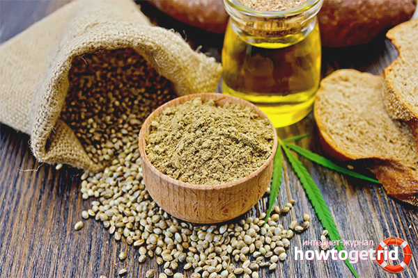 - If you use hemp oil as a dressing in various dishes (no more than 50 ml.), You can quickly forget about menstrual pains. Also recommended for men. As a result, the product will prevent the formation of genital cancer, prostate adenomas and impotence.