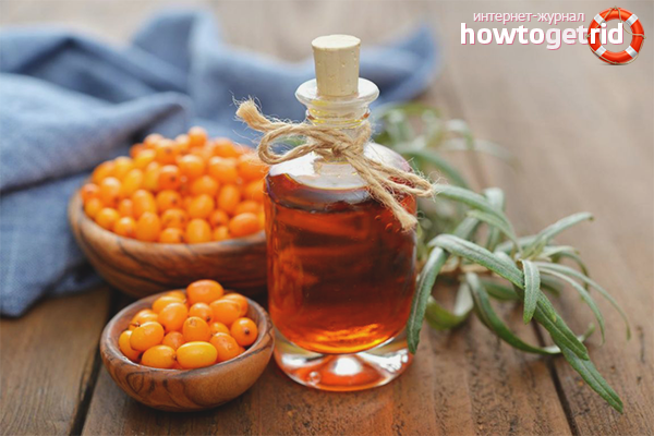 - With skin lesions. As mentioned above, sea buckthorn oil has regenerative properties.If you need to rid the epidermis of microcracks, cure large abrasions or wounds, lubricate the damaged areas with oil 4 times a day.