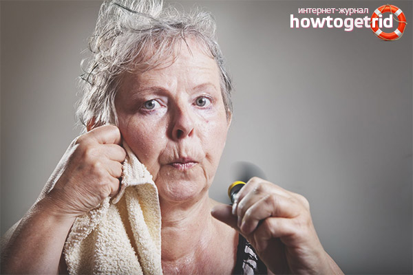 - When the fever is in the body, the woman may have a fever, and then return to normal after the attack. There is increased sweating, the appearance of perspiration. Some sweat very much during high tide, while others simply form a slight vaporization above the lip. The attack ends with the appearance of chills.For this reason, a woman has to go into the shower after him, or change clothes.
