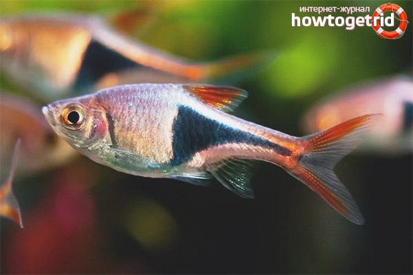 The parsing family has about 50 different species. The most popular for aquarium maintenance are heteromorphs or wedge-shaped species. They have miniature sizes and a bright spectacular color. The body length of these fish does not exceed 4 cm. They have a copper-colored body and a large black wedge-shaped speck on the body. It was the color that caused the name of this species. These fish live from 3 to 4 years.
