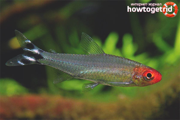 The appearance of these fish makes many people want to get them in their aquarium. The rhodostomus has an elongated graceful body. The length of an adult is about 4.5 cm. They live about 5 years. The most attractive feature of this beautiful fish is the presence of a red spot located on its head. Hence its second name is the red-headed tetra.