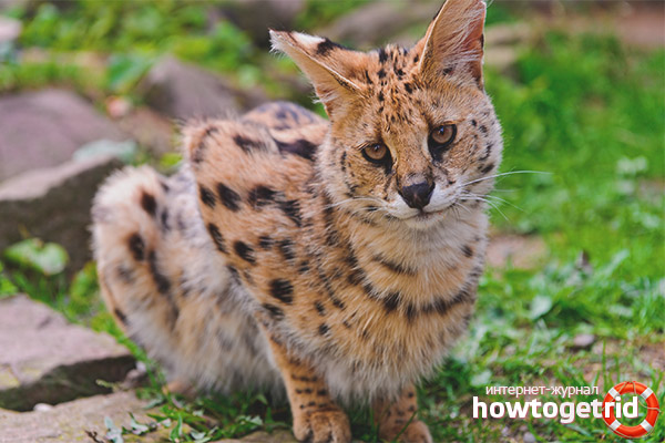 The ideal solution to make a wild child a pet is to place a serval cat in the house. His very appearance evokes dreams of hunting and incredible travels, and not surprisingly, because the homeland of this cat is distant Africa, in which the serval often lives outside of home. More recently, their number was quite numerous, but beautiful fur attracted poachers, and because of this the number of servals began to decline sharply. Large animals also hunt them, especially leopards.