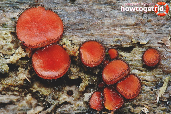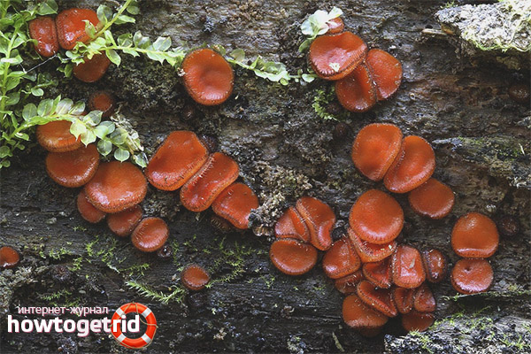 As a rule, this type of mushroom grows in heaps - in small groups, so in order to find them, it does not take much effort. Also attracting the attention of mushroom pickers and their characteristic appearance, namely, the bright color of the fruiting body. These mushrooms are cut with a sharp knife - in order not to damage both the fruit body of the scutellinia itself and the mycelium.