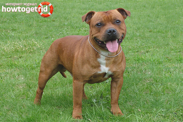 Staffords are not considered demanding in terms of content. They have a short coat, excellent immunity and good appetite.