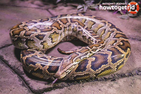 In length, such a snake reaches 8 m. This size can impress anyone. This representative is distinguished by pronounced willfulness and severity of character. They are kept at home like cats. This python, like a cat, preys on various synanthropic rodents, thereby benefiting its owners.