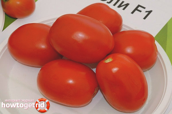Fruits are fleshy, rectangular-rounded, without pronounced ribbing. The so-called tomatoes "cream". The skin is thin, but strong and elastic, resistant to mechanical damage. Tomatoes of beautiful bright red color with brilliance. The average weight of fruits in a season is 100 - 120 gr., Can be poured up to 150 gr. Chibli fruits are dense, but the flesh is juicy, aromatic, with a rich tomato flavor. Dry matter content in pulp: 5.3 - 5.8%.