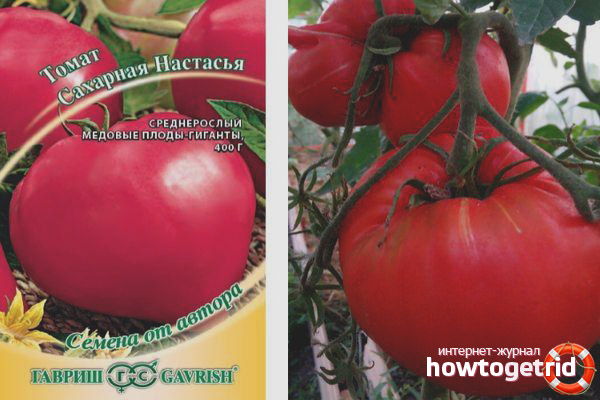 Sugar Nastasya is a hybrid variety with large fruits. He will feel great in the greenhouse. It is possible to get sweet, juicy fruits in open ground. To do this, you need to choose the right, well-lit place for constant growth, provide regular, sufficient watering, timely fertilizer, pinch and pinch tops. Proper, attentive care will certainly give excellent results. They are good for making light salads, just for slices or freshly squeezed juice. Ideal fruits for cooking lecho and creating dressings for borsch.
