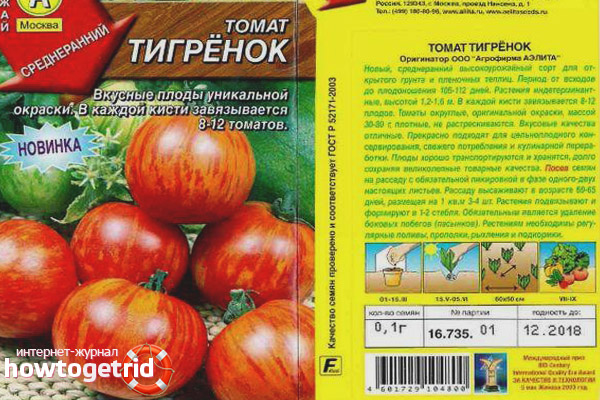 The tomato variety Tigrenok is a type of nightshade, which is the development of breeders from Russia. The plant is intended for cultivation on the open ground, as well as in greenhouses and greenhouses. Despite the relatively recent emergence of this variety on the seed market, the number of people who want to plant tomatoes of unusual color in their plots is growing rapidly.
