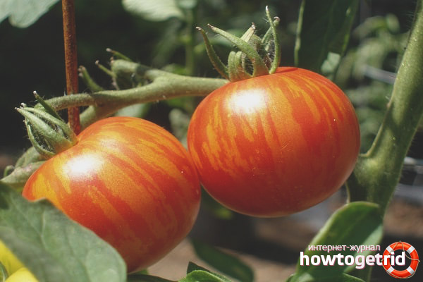 Gardeners appreciate the Tigrenok variety for the interesting coloring of ripe tomatoes, which resembles a tiger skin (this is what the variety was called for), as well as for its relatively high yield, excellent taste, and good commodity characteristics.
