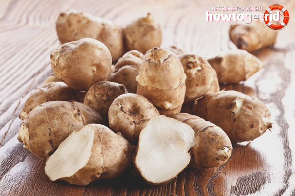 The composition of tubers accumulates such a mineral compound as silicon. The element is necessary for the treatment of diseases associated with joints. With a systematic reception, stiffness is eliminated, pain is reduced.
