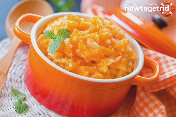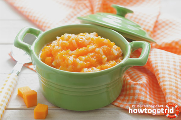 Also, it should be noted that even mothers give many mothers pumpkin porridge, which helps to cope with constipation and improve the digestive tract in a baby. Pediatricians recommend giving this dish to children 2 times a week.