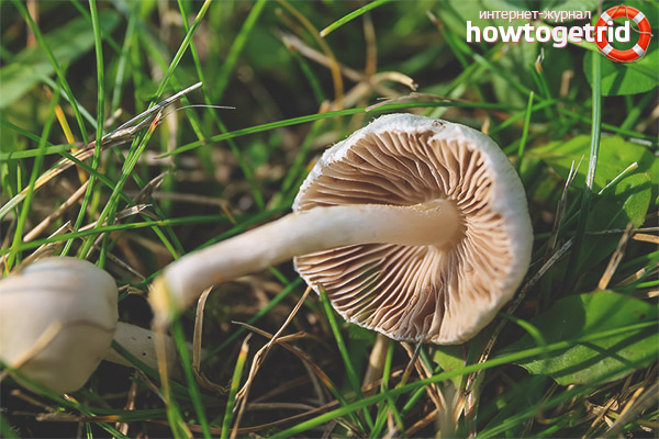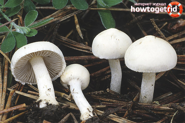 - The only thing worth mentioning is that fruit bodies with white hats are a bit like a pure mycene, which belongs to the category of inedible mushrooms. However, the latter has a dun hat color. At the same time, it is moist, and the edges have furrows. Such an instance has the smell of radish, and the leg is hollow.