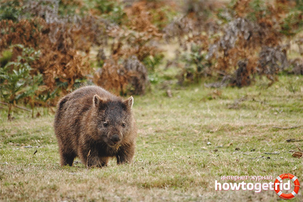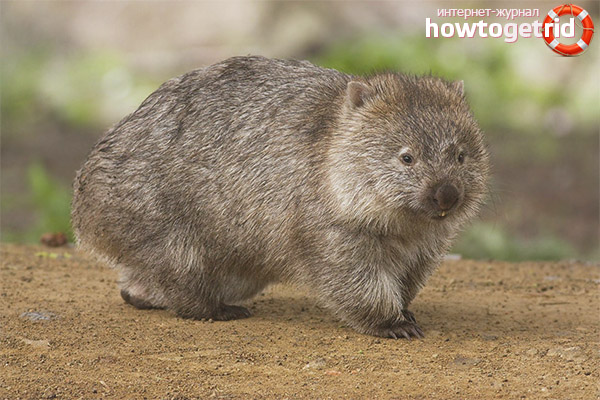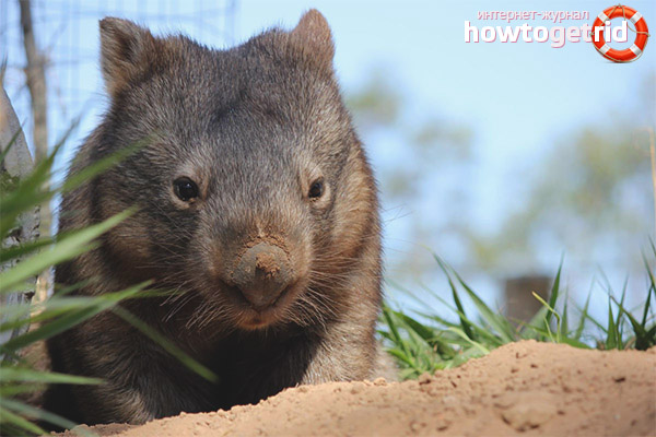 Wombat head deserves special attention. Compared to the size of the body, it is large. The shape of the head is somewhat flattened. If the wombat is in danger, he can defend himself with his head or even use it to attack the enemy. At the same time, he makes movements similar to butting, although this animal does not have horns.