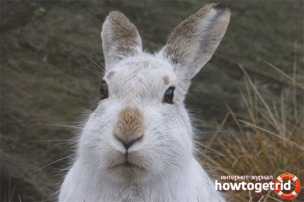 The color of the hare changes with the changing season, the hair in summer is gray, sometimes with a shade of red. And in winter - snow-white, with barely noticeable dark spots on the ears. The hare sheds twice a year, this process depends on the temperature conditions in the habitat. In areas where snowfall is much less, the color of the animal remains grayish.