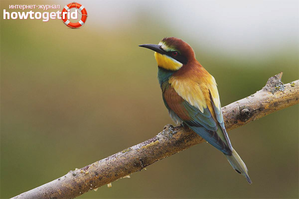 In ancient times, this bird was called a bee-eater, its belonging to the family of bee-eater. It has several more names, two of which are scrofula and jaundice. The individual has a beak 3.5 centimeters long, which has a curved shape. In the area of the beak, the head is colored white, and closer to the crown it wears a bluish-green plumage.