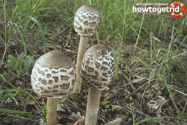 As mentioned above, the motley umbrella is an edible mushroom with excellent taste, so it is not surprising that many mushroom pickers consider it one of the best edible species. Umbrella hats can be grilled and added to salads after heat treatment. As a rule, the leg has a denser and stiffer pulp, which is why it is mainly dried, and subsequently used as a seasoning with a pronounced mushroom aroma for preparing various dishes.