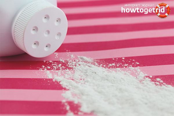 La mission principale du poudrage est la capacité de sécher la peau et de réduire les frottements. Cependant, n'oubliez pas que la poudre ne conserve ses propriétés qu'à l'état sec. Si la poudre est humide, elle roule en morceaux, ce qui peut provoquer une irritation cutanée.