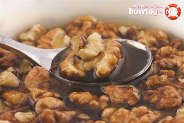 - Les vitamines pour la santé et la beauté des femmes se trouvent dans le miel et les noix. Moudre les noix et les verser avec du miel naturel liquide. Laissez-le au réfrigérateur pendant 10 jours et secouez périodiquement le récipient. Après l'heure spécifiée, cet outil doit être pris sur une cuillère à soupe le matin à jeun.