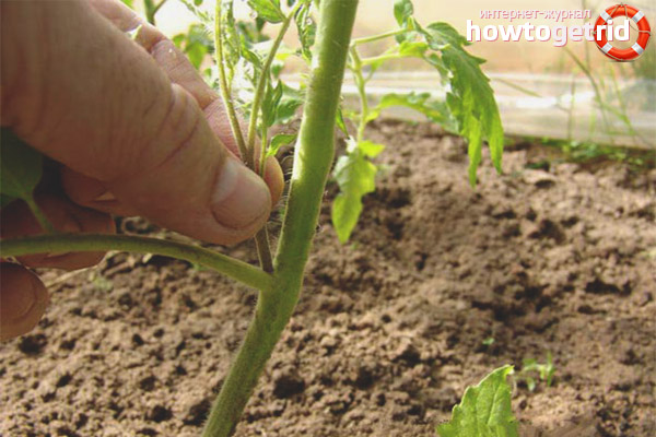 Les beaux-fils doivent être enlevés, qui à l'avenir peuvent former leurs branches et prendre de la force de la plante pour la formation et la croissance de la tige, et non pour la maturation des tomates. Vous devez vous marier dès que l'annexe est visible. Si le beau-fils a dépassé la taille de 7 centimètres, alors il est laissé et non cassé. Si vous supprimez un processus aussi volumineux, cela peut endommager la plante et cela commencera à faire mal.