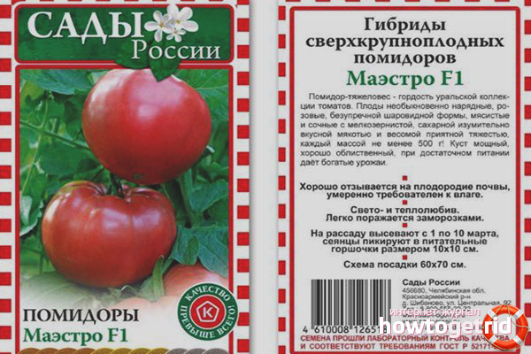 Tomato Maestro F1 - un hybride élevé par des éleveurs de l'Oural. Les fruits de cette variété ont une grande taille. Malgré cela, les tomates conservent leur aspect approprié pendant le transport, résistent aux dommages.